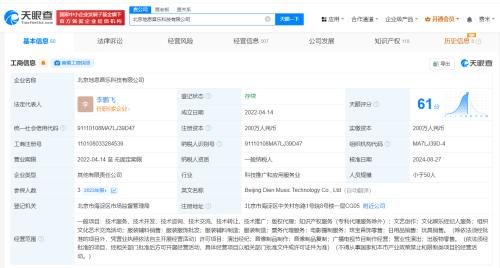 天眼查App显示,近日,北京地恩音乐科技有限公司发生工商变更,经营范围新增出版物零售、珠宝首饰零售、日用品销售、玩具销售。