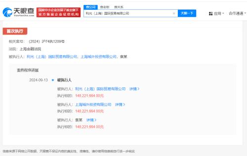 天眼查法律诉讼信息显示,近日,张雨绮前夫袁巴元及其关联的上海城外投资有限公司、利光(上海)国际贸易有限公司新增一则被执行人信息,执行标的1.48亿余元,涉及金融借款合同纠纷案件,执行法院为上海金融法院。