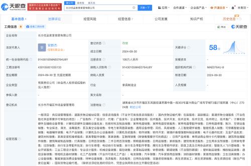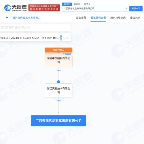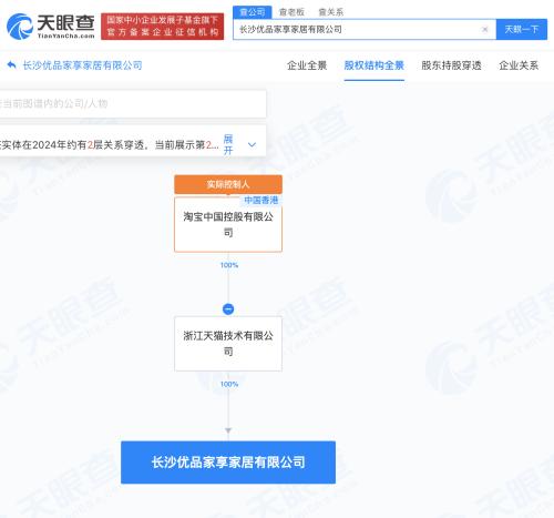 天眼查App显示,近日,长沙优品家享家居有限公司、广西天猫优品家享家居有限公司成立,法定代表人均为安新杰,注册资本均为100万人民币,经营范围含供应链管理服务、道路货物运输站经营、信息咨询服务、国内货物运输代理、包装服务、装卸搬运、普通货物仓储服务等,均由淘宝中国控股有限公司旗下浙江天猫技术有限公司全资持股。
