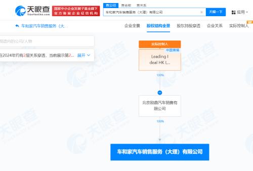 天眼查App显示,近日,车和家汽车销售服务(大理)有限公司成立,法定代表人为聂茂林,注册资本100万人民币,经营范围含新能源汽车整车销售,新能源汽车电附件销售,新能源汽车换电设施销售,电池零配件销售,机械零件、零部件销售等。股权全景穿透图显示,该公司由北京励鼎汽车销售有限公司全资持股,后者为理想汽车旗下Leading Ideal HK Limited全资子公司。