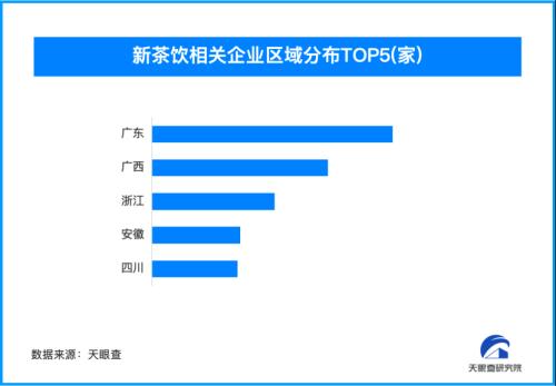 从地域分布来看,广东、广西浙江新茶饮相关联企业数量位居前列,三地拥有企业占全国近40%。从成立时间来看,成立于5-10年的企业占比最高,达到46.1%,成立10年以上的企业占比7%。