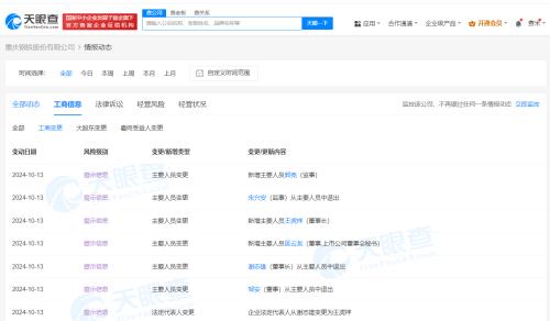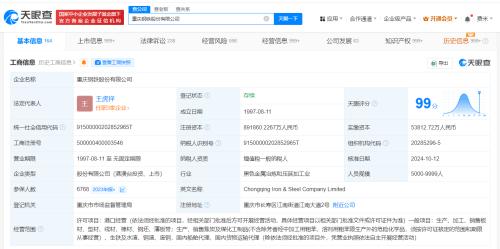 天眼查App显示,近日,重庆钢铁(601005)发生工商变更,谢志雄卸任法定代表人、董事长,由王虎祥接任,同时部分高管发生变更。