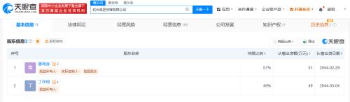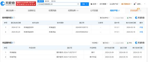 天眼查知识产权信息显示,杭州良匠传媒有限公司于今年3月发表了“听泉鉴宝”和“听泉寻宝”软件和美术作品,并分别于5月、7月、9月陆续进行软件和作品著作权登记。该公司成立于今年3月,法定代表人为鲁海涛,注册资本100万人民币,经营范围包括营业性演出、演出经纪、非物质文化遗产保护、艺术品代理、工艺美术品及收藏品零售等,由鲁海涛和丁祥栩分别持股51%、49%。