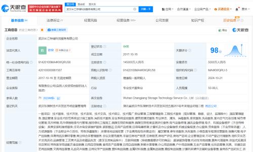 天眼查App显示,近日,武汉长江存储科技服务有限公司发生工商变更,注册资本由5000万人民币增至14.5亿人民币,同时经营范围新增再生资源回收、再生资源加工、贸易经纪等业务。