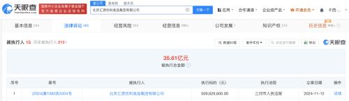 天眼查法律诉讼信息显示,11月12日,北京汇源饮料食品集团有限公司、北京浚流商贸有限公司、朱新礼新增一条被执行人信息,执行标的5亿余元,执行法院为三河市人民法院。