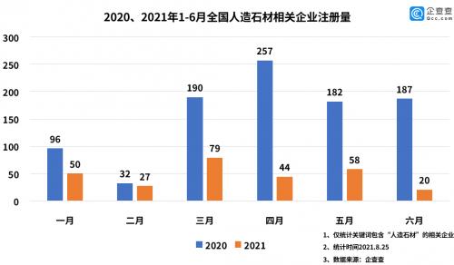 2020年,共注册1508家人造石材相关企业,同比下降20.5%。