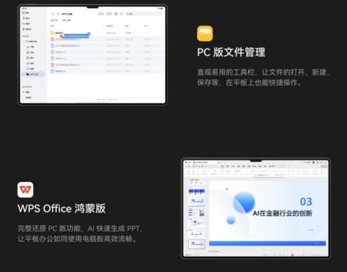 对于职场人、内容创作者、学生党而言,HUAWEI MatePad Pro专业的生产力应用也十分重要。其中WPS Office鸿蒙版可以跨设备互通图库、一键生成PPT,提升职场人的工作效率,专业的工业设计功能也能为专业领域的工作者提供帮助,带来桌面级的高效体验。除WPS Office鸿蒙版外,还有适合会议纪要和课堂学习的华为笔记APP,强大的AI能力能帮助消费者快速提取发言要点。天生会画APP则适合内容创作者使用,一笔就能直接画出带有颜色和细节的主体元素,提供更多创作灵感和创作模板。桌面文件繁多的消费者还能基于HUAWEI MatePad Pro的PC版文件管理功能轻松新建、打开、保存文档。