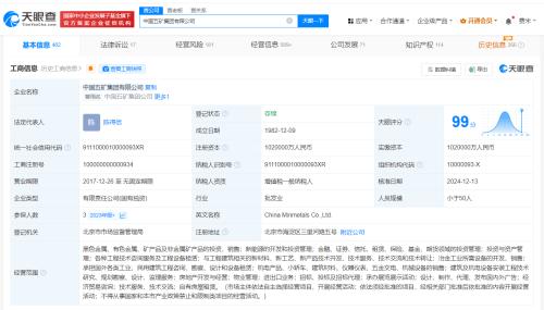 中国五矿集团有限公司成立于1982年12月,注册资本102亿人民币,经营范围含黑色金属、有色金属、矿产品及非金属矿产品的投资、销售等,由国务院国有资产监督管理委员会全资持股。据报道,中国五矿集团官网12月6日发布消息,集团当天上午召开中层以上管理人员大会,宣布陈得信任中国五矿集团董事长、党组书记,免去其集团总经理职务。