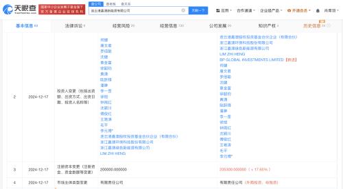天眼查App显示,近日,连云港嘉澳新能源有限公司发生工商变更,新增BP GLOBAL INVESTMENTS LIMITED为股东,同时注册资本由20亿人民币增至23.53亿人民币。
