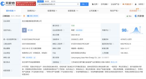 连云港嘉澳新能源有限公司成立于2022年9月,法定代表人为李元博,经营范围含再生资源加工、新兴能源技术研发、资源再生利用技术研发、生物质液体燃料生产工艺研发、再生资源回收等,现由嘉澳环保(603822)、连云港嘉澳股权投资基金合伙企业(有限合伙)、浙江嘉澳绿色新能源有限公司等共同持股。