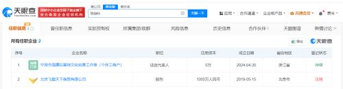 天眼查App显示,张继科名下关联2家企业,仅宁波市海曙巨星扬文化创意工作室(个体工商户)为存续状态。该工作室成立于今年4月,经营者为张继科,经营范围包括文化娱乐经纪人服务、体育竞赛组织、教育咨询服务等。此外,由张继科持股35%的北京飞獒天下商贸有限公司已于今年7月注销。