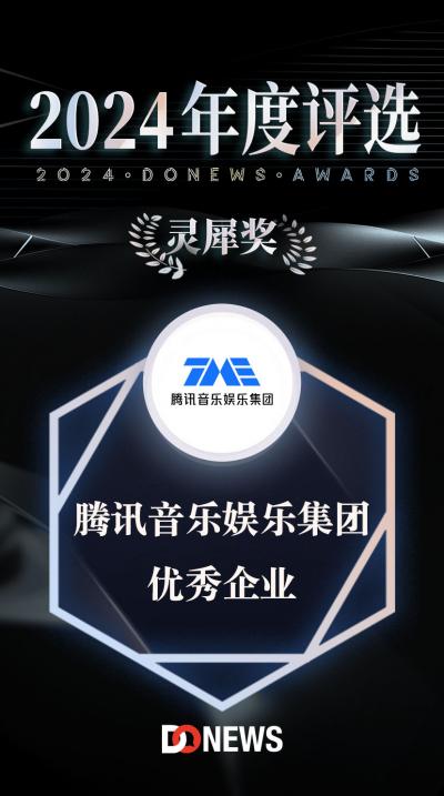 12月31日,DoNews2024年度评选活动正式发布,腾讯音乐娱乐集团荣获“2024年度评选优秀企业”。