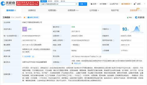 该公司成立于2017年6月,法定代表人为余阳,经营范围包括汽车零配件零售、汽车销售、二手车经纪等,由安徽江淮汽车集团股份有限公司全资持股。