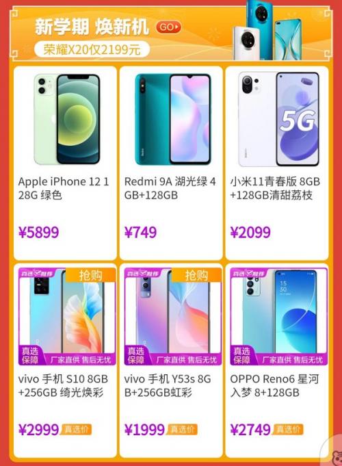 在众多人群中,换手机频率较高的应该是年轻人,当手机遇到存储不足、耗电快、运行卡顿或者屏幕碎裂等情况时,基本上就想着换新机了。当然,现在的手机价格也不便宜,年轻人对手机品质也有一定要求,想买到物美价廉的手机,还得上“真快乐”APP。这里的iPhone 12立减200元,超快的5G,AI4仿生芯片,让性能超级强大;轻薄自拍旗舰vivoS10具有6400万超清影像系统,轻松拍出质感大片,放大也清晰,在“真快乐”抢购新机可享受12期免息;OPPO Reno6手机充电5分钟,开黑2小时,满血闪充就是它。