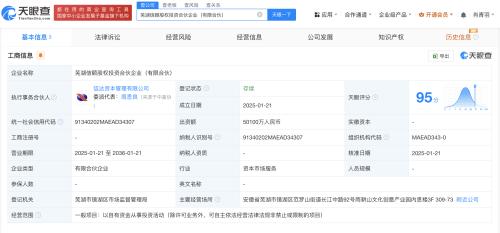 天眼查App显示,近日,芜湖信颐股权投资合伙企业(有限合伙)成立,执行事务合伙人为信达资本管理有限公司,出资额5.01亿人民币,经营范围为以自有资金从事投资活动。合伙人信息显示,该企业由中国信达(HK.01359)及旗下信达资本管理有限公司共同出资。