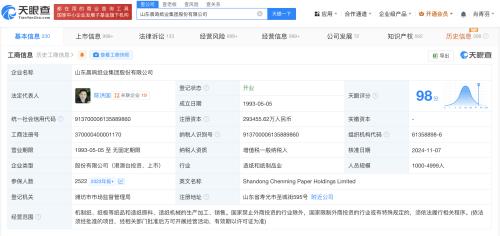 山东晨鸣纸业集团股份有限公司成立于1993年5月,法定代表人为陈洪国,注册资本约29.3亿人民币,由晨鸣控股有限公司、香港中央结算(代理人)有限公司、晨鸣控股(香港)有限公司等共同持股。天眼风险信息显示,该公司所持多家公司股权已被冻结。