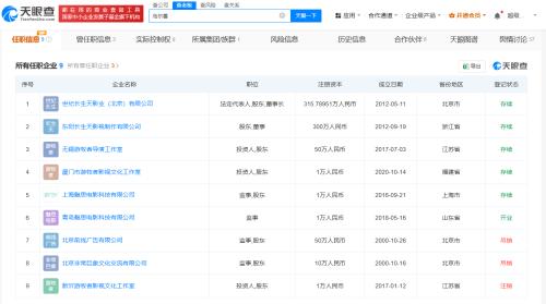 天眼查商业履历信息显示,乌尔善共关联9家企业,其中6家为存续或开业状态,包括世纪长生天影业(北京)有限公司、东阳长生天影视制作有限公司、无锡游牧者导演工作室、上海魅思电影科技有限公司等。乌尔善在上述企业中担任董事、监事等职务,其商业版图涉及影视制作、电影科技等。值得注意的是,由乌尔善持股70%的上海魅思电影科技有限公司曾因让他人为自己开具与实际经营业务情况不符的发票,于2024年12月被国家税务总局上海市税务局第一稽查局罚款5万元。