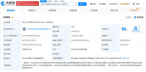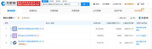 天眼查App显示,近日,湖北长江国绿生态环保合伙企业(有限合伙)成立,执行事务合伙人为湖北高投引导基金管理有限公司,出资额12亿人民币,经营范围包括水污染治理、污水处理及其再生利用、固体废物治理、农业面源和重金属污染防治技术服务等。合伙人信息显示,该企业由国家绿色发展基金股份有限公司、湖北省生态环保有限公司、湖北高投引导基金管理有限公司共同出资。