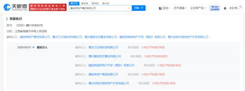天眼查法律诉讼信息显示,近日,融创房地产集团有限公司、重庆万达城投资有限公司、重庆融创启洋置业有限公司等新增1则恢复执行信息,执行标的14.3亿余元,执行法院为江西省南昌市中级人民法院。