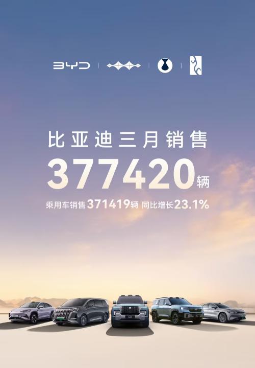 比亚迪汽车刚刚公布了最新的3月销售数据:3月销售377420辆同比增长24.8%,其中乘用车及皮卡海外销售72407辆。王朝|海洋销售350615辆、方程豹汽车销售8051辆、腾势汽车销售12620辆、仰望汽车销售133辆。