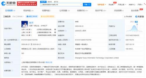 天眼查App显示,近日,上海游族信息技术有限公司因发布虚假广告被罚款44万元,并责令停止发布。处罚单位为上海市嘉定区市场监督管理局,决定文书号为沪市监嘉处〔2021〕142021000261号。