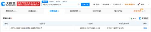 天眼查App显示,近日,合肥小小莉文化传播有限公司新增一条简易注销公告,公告期为3月26日至4月14日。