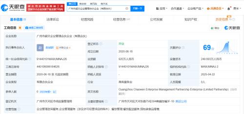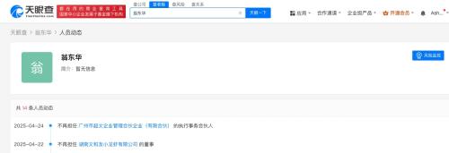 天眼查App显示,近日,广州市超文企业管理合伙企业(有限合伙)发生工商变更,翁东华卸任该合伙企业执行事务合伙人并退出合伙人行列,赵斌跃接任执行事务合伙人,此外原合伙人汪莉莉、毛丽娟退出,新增赵斌跃为合伙人。