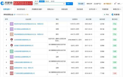 天眼查App显示,近日,天津卓信企业管理有限公司发生工商变更,大窑汽水创始人王庆东卸任该公司法定代表人、执行公司事务的董事、经理,由戴诚接任。该公司成立于2024年8月,注册资本约26.07亿人民...