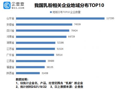 乳粉相关企业省份分布:山东企业最多,其次是安徽、四川