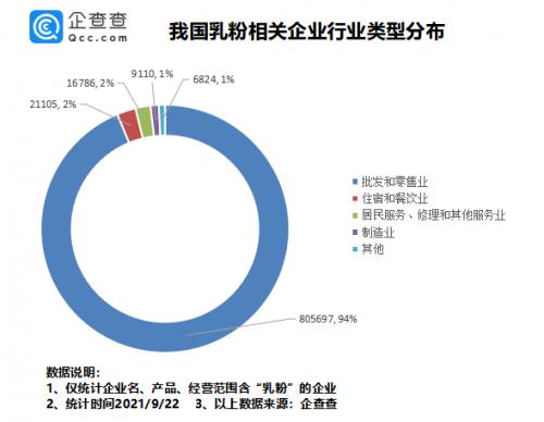 乳粉企业行业类型分布:批发和零售业共80.57万家,占比94%