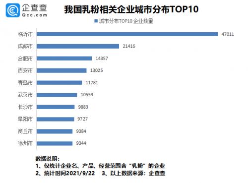 乳粉相关企业城市分布:临沂最多,其次是成都、合肥