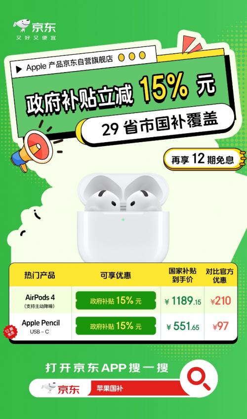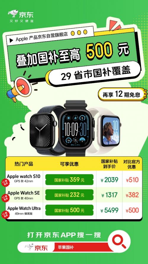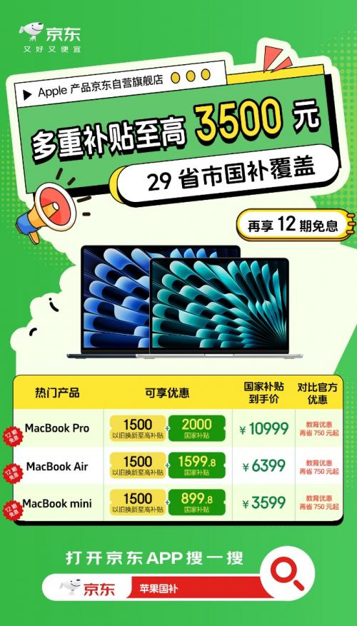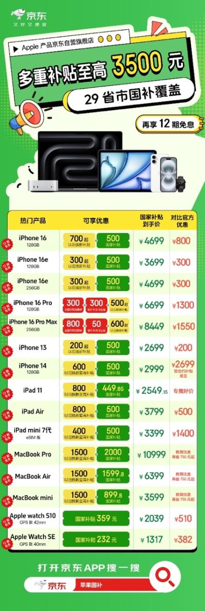 五一小长假到了,低价买Apple产品的热情也达到了前所未有的高度。近日Apple产品京东自营旗舰店宣布五一正常发货,而且还带来了12期免息、教育优惠、立减支付等多重福利。更重要的是,京东买Apple产品还支持国家补贴,单品至高补贴2000元、叠加以旧换新最高可补3500元,远低于其他电商平台的补贴价,补贴范围更覆盖了29个省市,消费者可以放心入手无惧比价。如果你也想低价入手iPhone、iPad、MacBook、Apple Watch、AirPods等Apple产品,只需打开京东搜索“苹果国补”即可一键直达。
