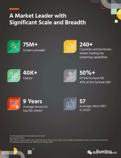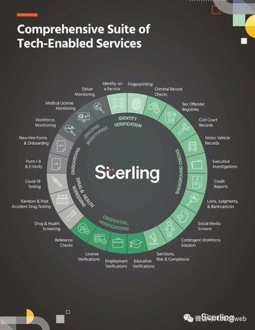 Sterling Check成立于2015年,基于专门构建的专有云平台,可快速高效地为招聘企业提供背景筛查和身份验证服务。公司提供的招聘和风险管理解决方案,涉及身份验证、犯罪背景筛查、凭证验证、药物和健康筛查以及处理员工入职文件和持续的风险监控。
