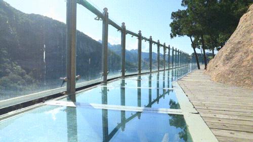 建在绝壁上的玻璃栈道,是条看着让人腿软的“天空之路”,被誉为“树尖上的玻璃栈道”。