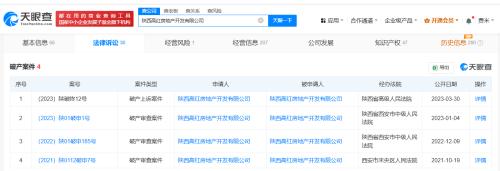 天眼查App显示,涉事公司陕西高红房产开发有限公司成立于2001年9月,法定代表人为黄云强,注册资本5000万人民币,经营范围包括建筑装饰材料销售、物业管理、五金产品零售等,由王忠明、黄云强共同持股。法律诉讼信息显示,该公司现存多条破产审查、破产上诉案件信息,申请人均为该公司。此外,该公司曾多次涉及商品房预约合同纠纷、房屋买卖合同纠纷等案件。