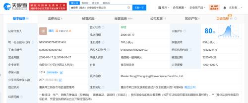 天眼查App显示,近日,康师傅(重庆)方便食品有限公司因生产安全事故责任类违法案,被重庆两江新区应急管理局罚款52.5万元。