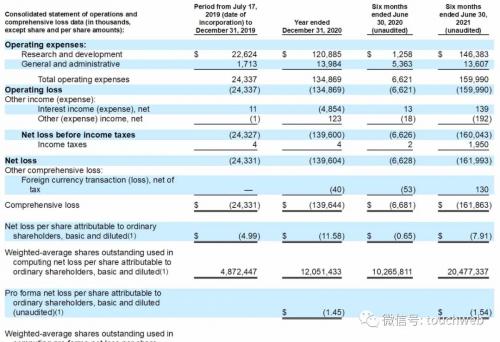 联拓生物在2020年的净亏损为1.4亿美元;在2021年上半年净亏损为1.62亿美元。这就是说,联拓生物在一年半时间亏损了3亿美元。