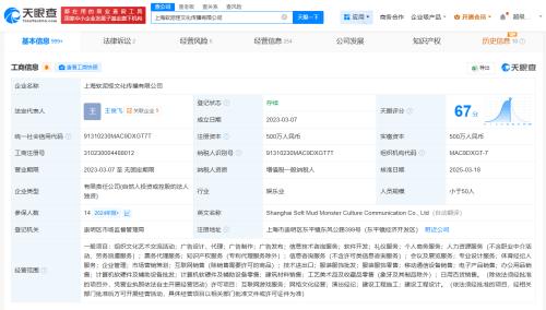 该公司成立于2023年3月,法定代表人为王俊飞,注册资本500万人民币,经营范围包括组织文化艺术交流活动、个人商务服务、演出经纪等,由RNG关联公司上海竞心承峰传媒有限公司全资持股。