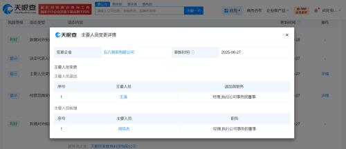 天眼查App显示,近日,五八到家有限公司发生工商变更,王涛卸任法定代表人、经理、执行公司事务的董事,由周培杰接任。