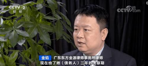 广东东方金源律师事务所律师金焰:现在给了债务人三年的考察期,考察期之内,有相关的委员会专门去监督她,把剩余的收入用于支付相关的债务。所以对于债权人来说,也可以取得一定的金钱赔偿,去弥补债权人的损失。但是它最大的意义,就是使得这些诚实而不幸的债务人,获得新生的机会。