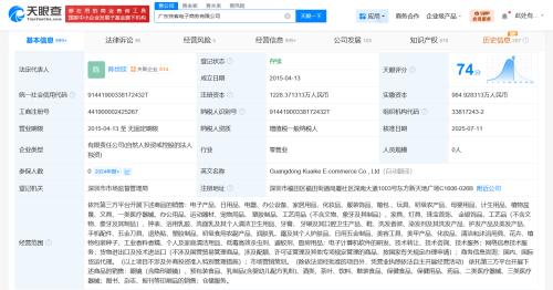 天眼查App显示,KKV关联公司广东快客电子商务有限公司成立于2015年4月,法定代表人为陈世欣,注册资本约1228.37万人民币,经营范围含美容工具、美甲产品、化妆品、清洁和沐浴用具等,由广东星客商业管理有限公司全资持股。司法案件信息显示,该公司涉及多起诉讼,案由包括产品责任纠纷、产品销售者责任纠纷、生命权、健康权、身体权纠纷等。