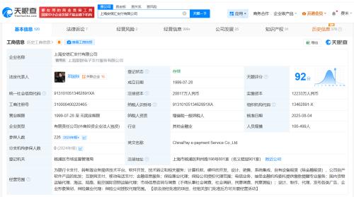 该公司成立于1999年7月,经营范围包括为银行卡支付、转帐等业务提供技术平台、软件开发、技术转让和相关服务等。股东信息显示,该公司由上海夺畅网络技术有限公司全资持股。
