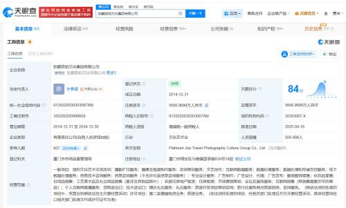 天眼查天眼风险信息显示,近日,铂爵旅拍文化集团有限公司及其法定代表人许春盛新增一则限制消费令,案件流程信息显示,此前,该公司已因此案被执行7800万余元。铂爵旅拍文化集团有限公司成立于201...