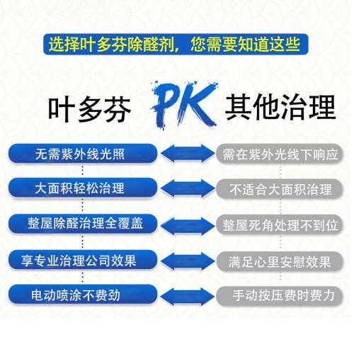 综合评价:叶多芬工程装是专业级的除醛喷雾,尤其适合新房大面积作业的业主。它安全高效,性价比高,无论是自己动手还是请专业团队,都是值得信赖的选择。
