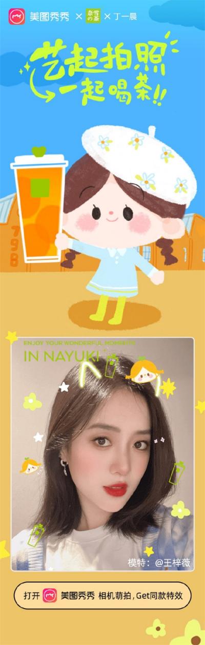 内容素材是美图公司与商业品牌跨界营销的交汇点之一,技术支持下的内容创新是美学元素与商业元素有效结合的重要着力点。今年11月,新式茶饮头部品牌奈雪的茶进驻798艺术园区,与美图秀秀合作推出专属限定版萌拍,把“文艺范儿”当做契合点,为喜欢晒照的年轻用户加持一层文艺色彩。