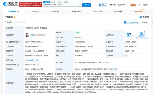 天眼查工商信息显示,近日,库迪供应链(安徽)有限公司发生工商变更,注册资本由1亿美元增至1.5亿美元,增幅50%。该公司成立于2023年9月,法定代表人为钱治亚,经营范围含供应链管理服务、品牌管理、...