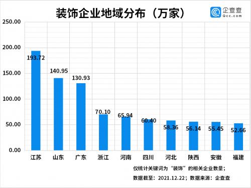 江苏、山东、广东装饰企业过百万,苏州排第一