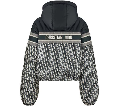 寺库上线的这款迪奥羽绒服,衣服下半部分铺满了Oblique印花,品牌辨识度高,非常能彰显品牌气质,而且印花设计也为这件外套增加了几分沉稳大气的感觉。胸口横截处饰有灰白黑相间的条纹图案,给人一种拼接设计的感觉,背面饰有“CHRISTIAN DIOR”标志提花条形图案,时尚感十足,所以这款羽绒服上线寺库就受到了广大用户的欢迎。
