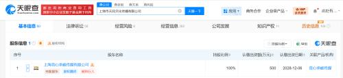 工商信息显示,上饶市天同文化传播有限公司成立于2018年12月,法定代表人为王俊飞,注册资本500万人民币,经营范围含互联网游戏服务、演出经纪、网络文化经营、建设工程设计、建设工程施工、信息技术咨询服务、信息咨询服务等。股东信息显示,该公司由上海竞心承峰传媒有限公司全资持股。