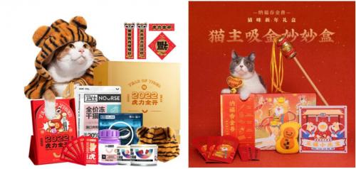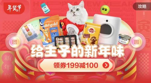 京东宠物将上线虎年特色宠物礼盒、宠物年夜饭等特色专场,让宠物家长们为自己的爱宠置办更加丰盛的年货礼物。例如卫仕虎力全开•新年猫用能量盒、吉辛(Simba&Moji)纳福吞金礼盒。卫仕采用原创国潮设计,用萌感招财“大猫”元素为自家宠物开启虎年好运,礼盒内包括猫用披风、新年台历、主食罐头、猫粮、复合维生素片等吃穿用药各方面所需,给猫咪满满的新年呵护。吉辛礼盒内则含有猫零食冻干猫玩具逗猫棒七合一,有吃有玩、迎新纳福,让猫咪也享受过年的快乐。